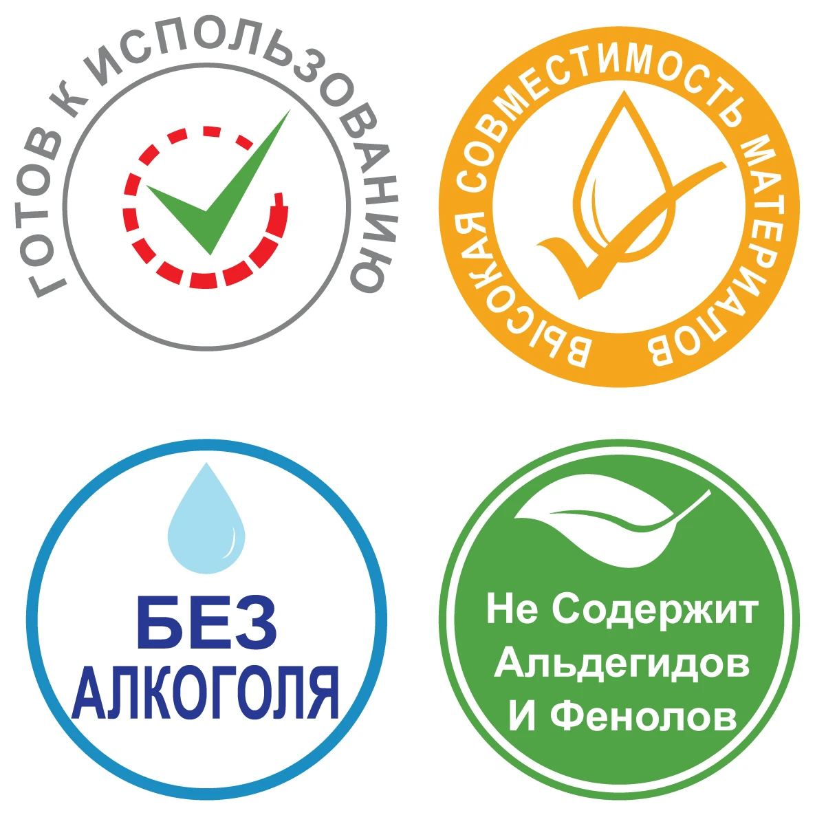 Благодаря распылительной головке средство имеет свойство распыляться в виде пены. Не содержит фенола, альдегидов и спирта.