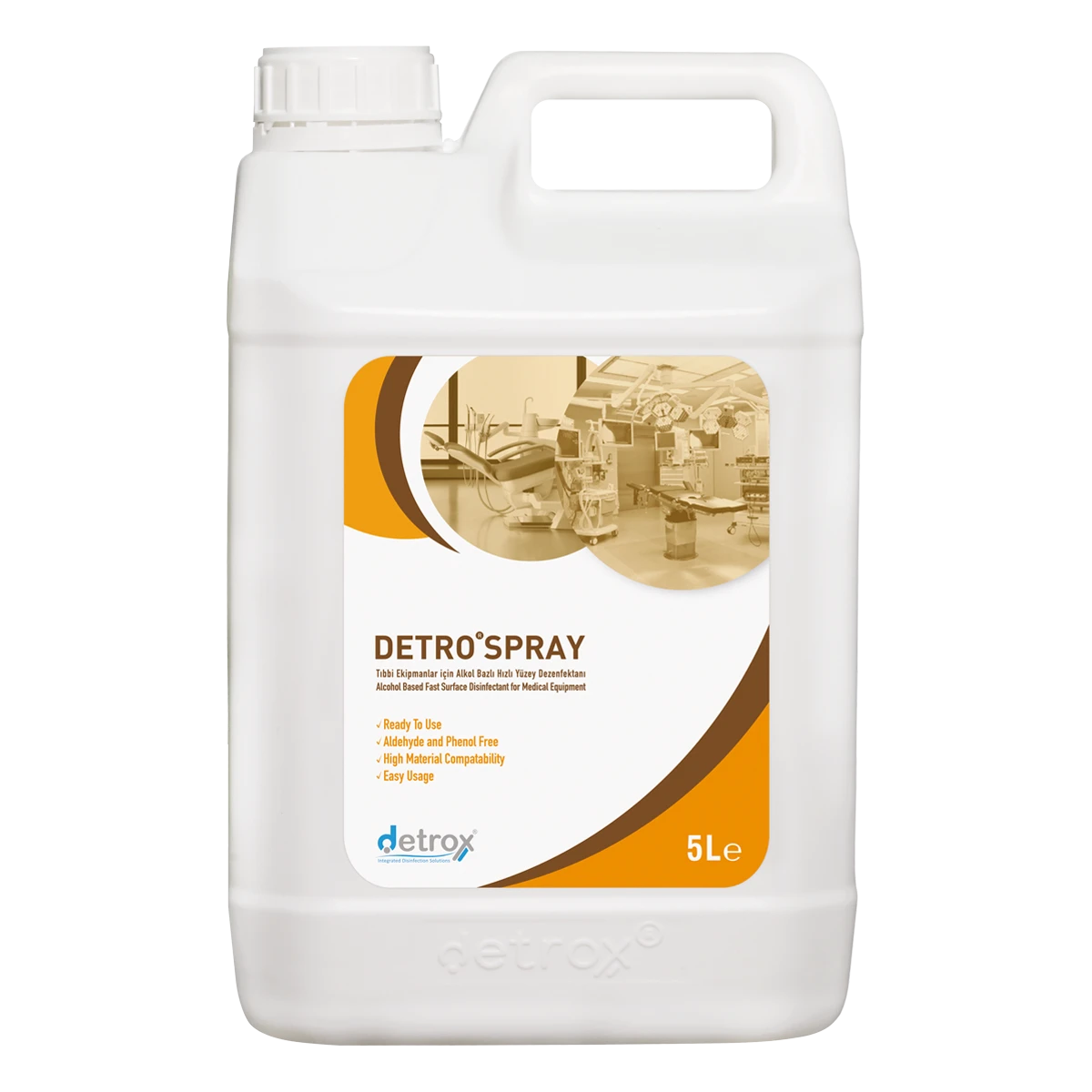 Detro Spray — это дезинфицирующее средство для поверхностей на основе спирта. Этот продукт не содержит альдегидов и фенолов и имеет широкий спектр действия благодаря сочетанию различных компонентов.