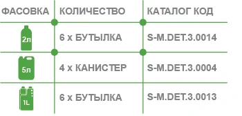 1% – 5% ферментов (амилаза, протеаза, липаза, целлюлаза), гликоль, неионогенные ПАВ, четвертичные аммониевые соединения, антикоррозийные агенты